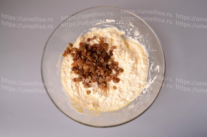 Изюм покупайте без косточек. По цвету – не важно. В сырники можете добавить от 50 до 100 грамм, на свое усмотрение. Если же вы совсем не любите изюм, исключите его из списка ингредиентов.