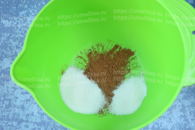 Смешайте сахарную пудру и какао-порошок. Можно добавить ванилин или ванильный сахар по вкусу.