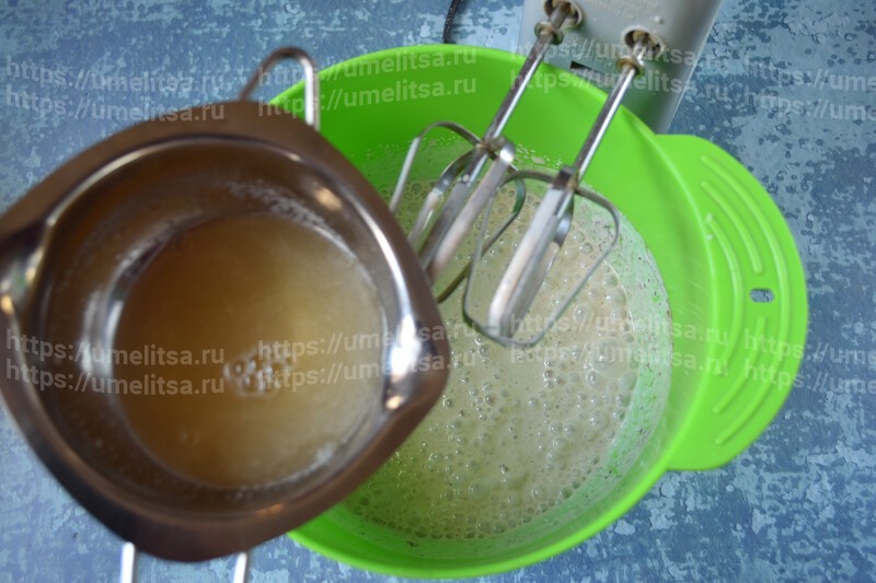 Желатин нагрейте в микроволновке или на водяной бане. Самое главное – не допустить закипания. Когда все желатиновые крупинки растворятся, начните взбивать ряженку и влейте горячий желатин тонкой струйкой. Продолжайте взбивать, чтобы масса была как можно более воздушной. Если добавить вполовину меньше желатина, десерт будет ещё более лёгким.
