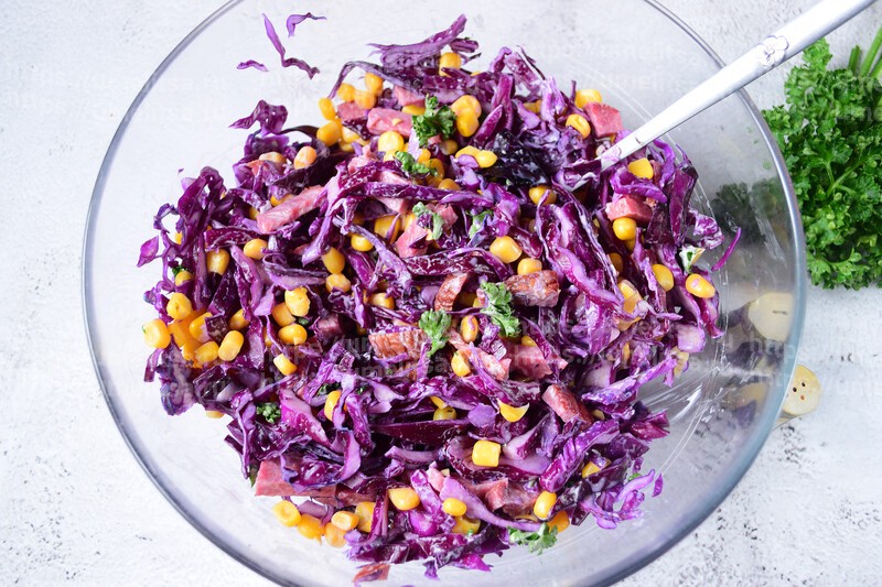 К столу салат из краснокочанной капусты подавайте сразу.