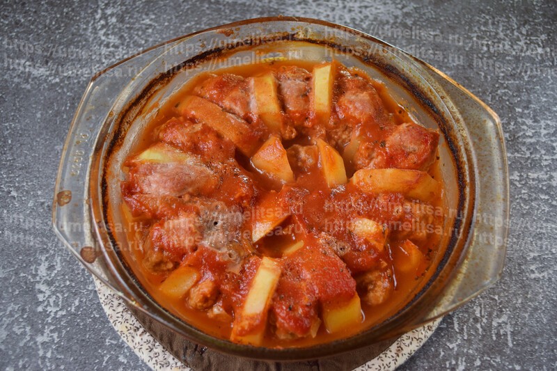 Обычные котлеты и обычная картошка – это банально. Предлагаем вам рецепт запечённых в духовке котлет с картофелем в томатном соусе. Получается просто невероятно вкусно. И котлеты, и картофель очень сочные и нежные. Самое большое преимущество в том, что блюдо запекается в духовке. Поставили и ждите. Не нужно стоять у плиты, переворачивать котлеты и регулировать газ, чтоб ничего не сгорело.