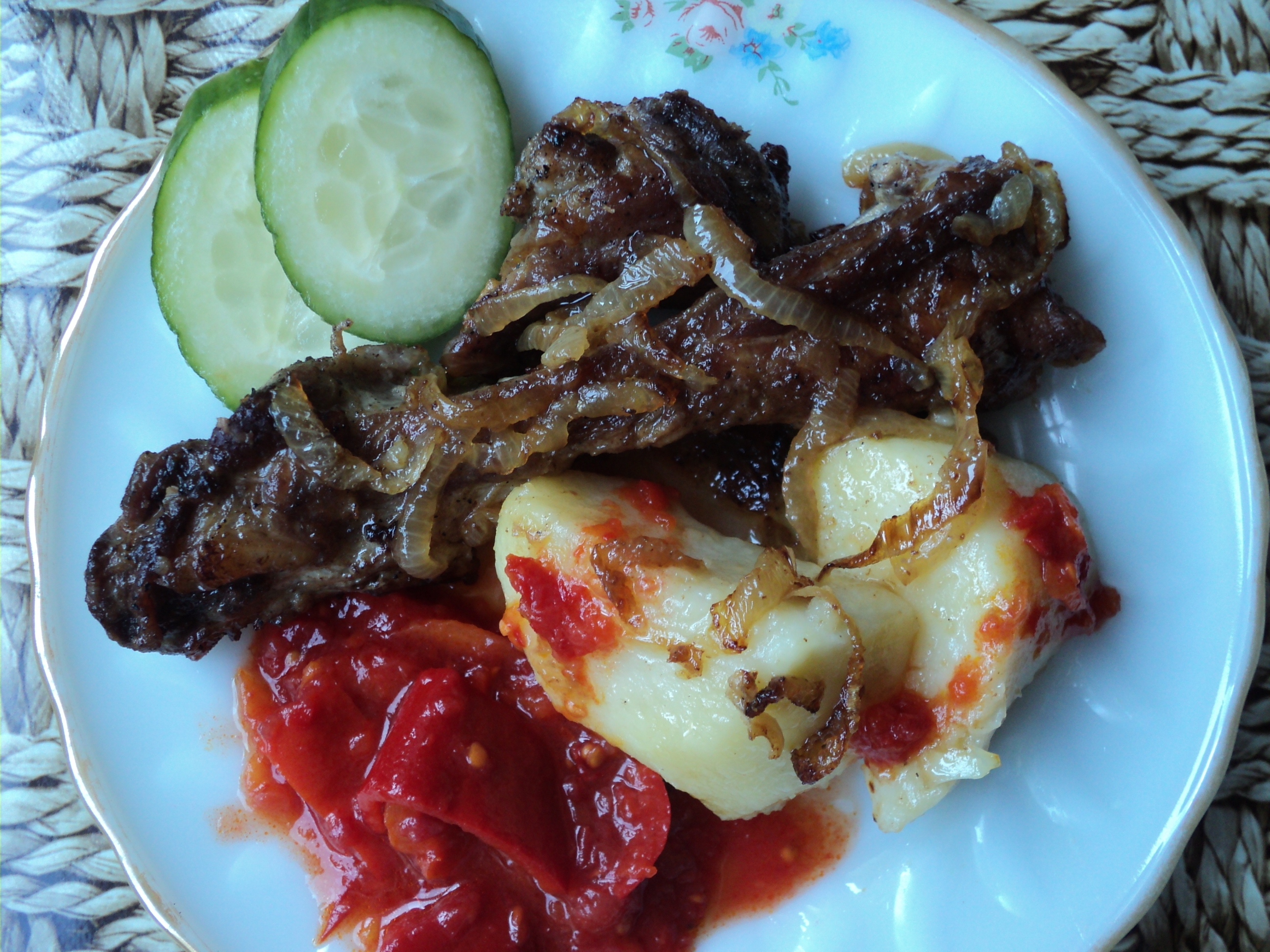 7. Сок помидоров. Мясо, замаринованное в томатном соке, получается необычайно сочным и вкусным. Подготовка порционных кусков занимает от 6 до 12 часов (можно выдержать мясо в маринаде и на протяжении суток, естественно, в холодильнике). На каждый килограмм мяса берется 0,3 л томатного сока из пакета или полученного путем разведения томатной пасты обычной водой, 2 чайные ложки соевого соуса, несколько головок репчатого лука, нарезанного полукольцами, специальную смесь из специй для шашлыка и соль (по вкусу).