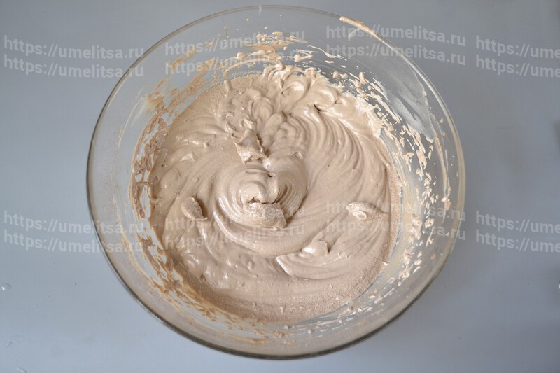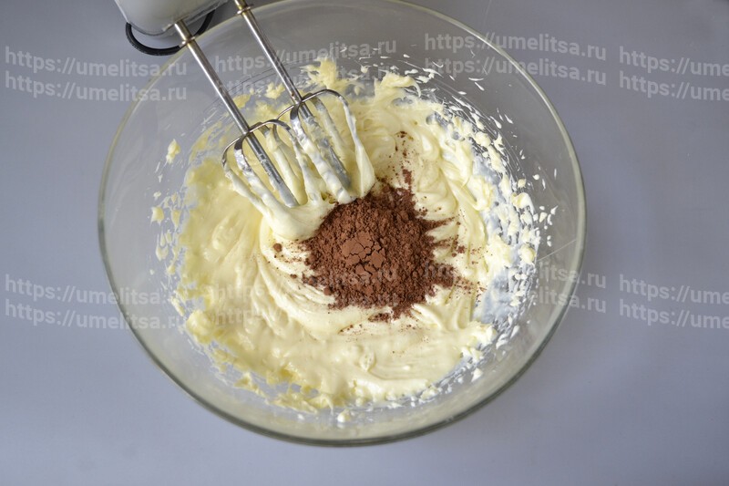 Взбейте миксером, чтобы какао равномерно распределилось в креме.