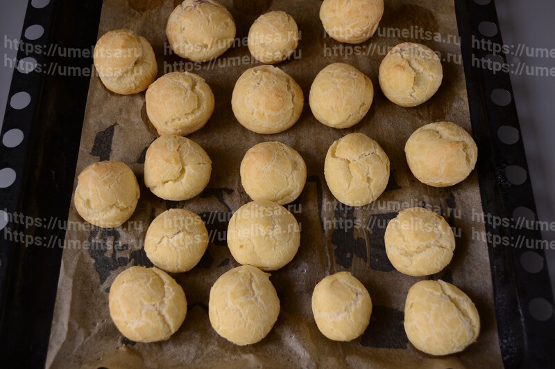 После полного остывания, разрежьте каждый шарик на две части и наполните кремом. Соедините.