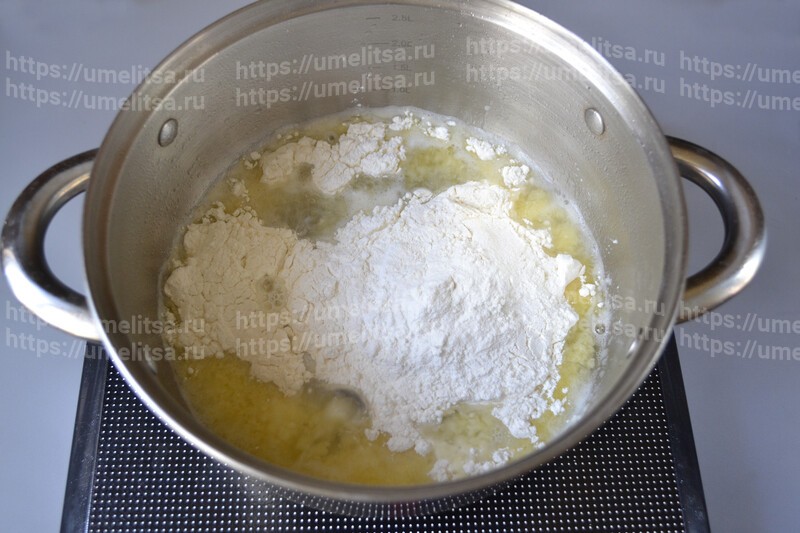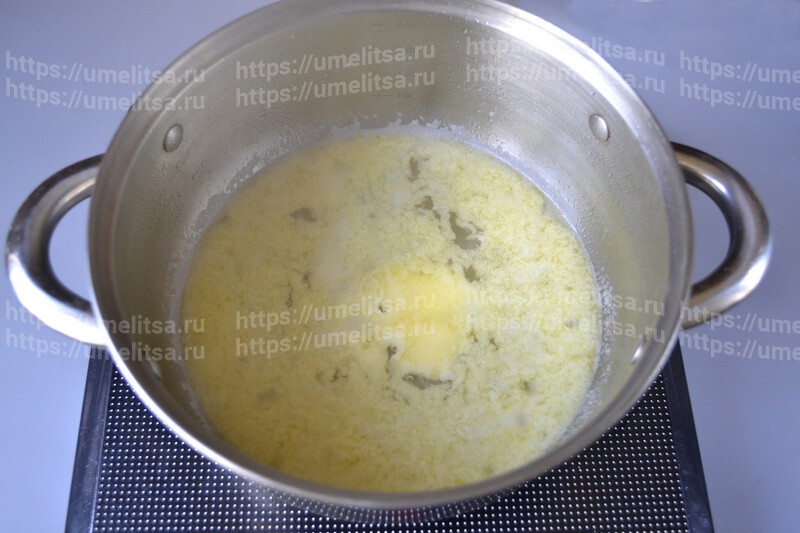 Когда маргарин полностью растворится, снимите кастрюльку с огня.