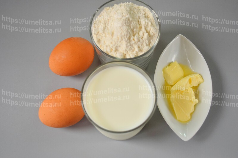 Все ингредиенты для поповеров заранее достаньте из холодильника. Они должны быть комнатной температуры. Молоко можно брать любой жирности – это не принципиально. Масло сливочное только натуральное, никакого спреда и маргарина.